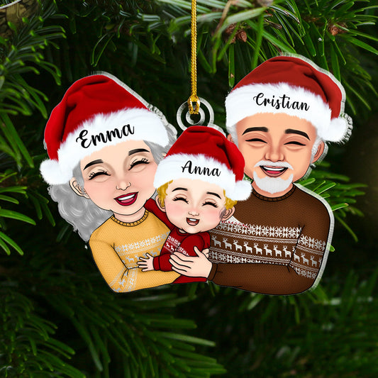 Grandpa, Grandma and Grandkid On Christmas - Personalized Custom Shape Acrylic Ornament