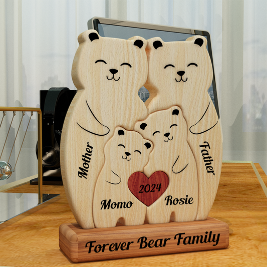 Teddy Family Bear Wooden Bear Family - Puzzle Wooden Family - Wooden Pet Carvings