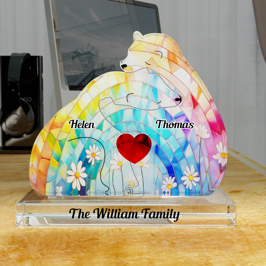Lovely Bear Family Hugging In Cozy Season Acrylic - Puzzle Acrylic Bears Family - Acrylic Pet Carvings
