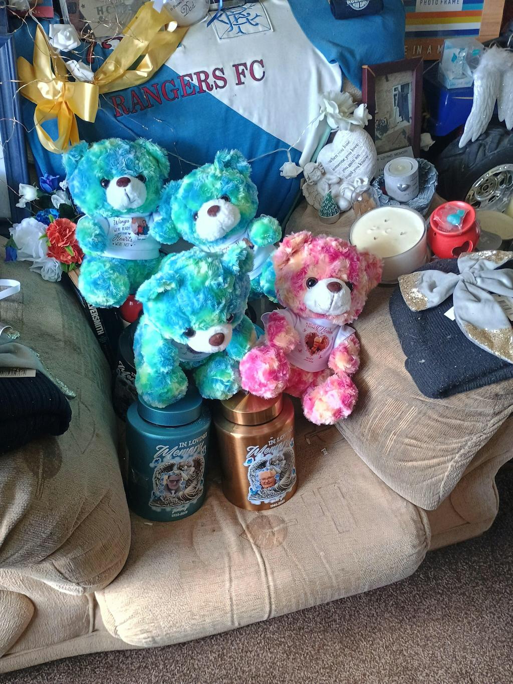 It's such a wonderful idea as my brother is no longer with us and his departure has left his partner broken in more ways than one so i bought this bear to ease her pain and she loves him,thanks ever so much.