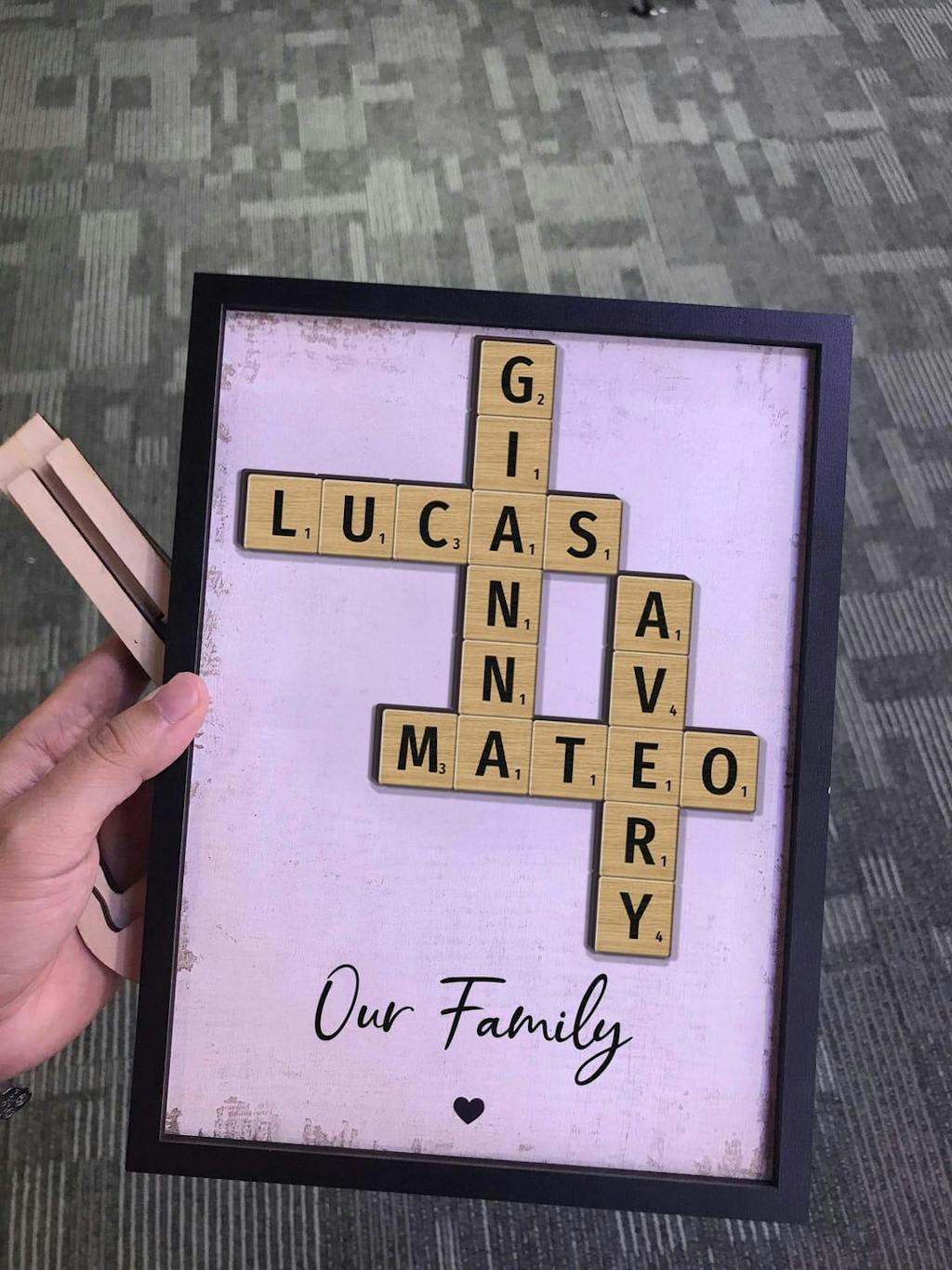 The design is stunning! I love how it incorporates our family names. It’s a beautiful piece of art that I’m proud to display.
