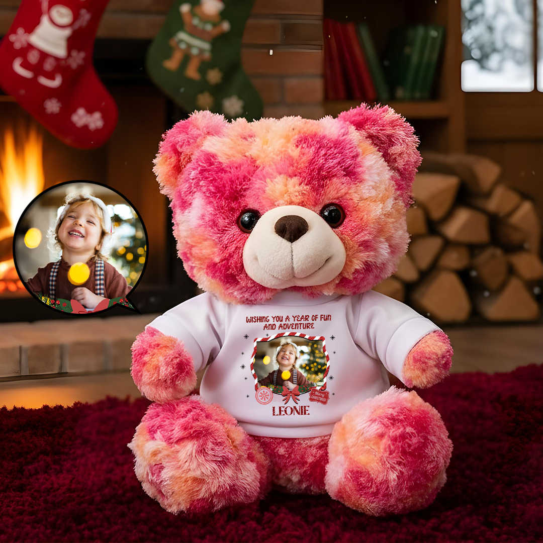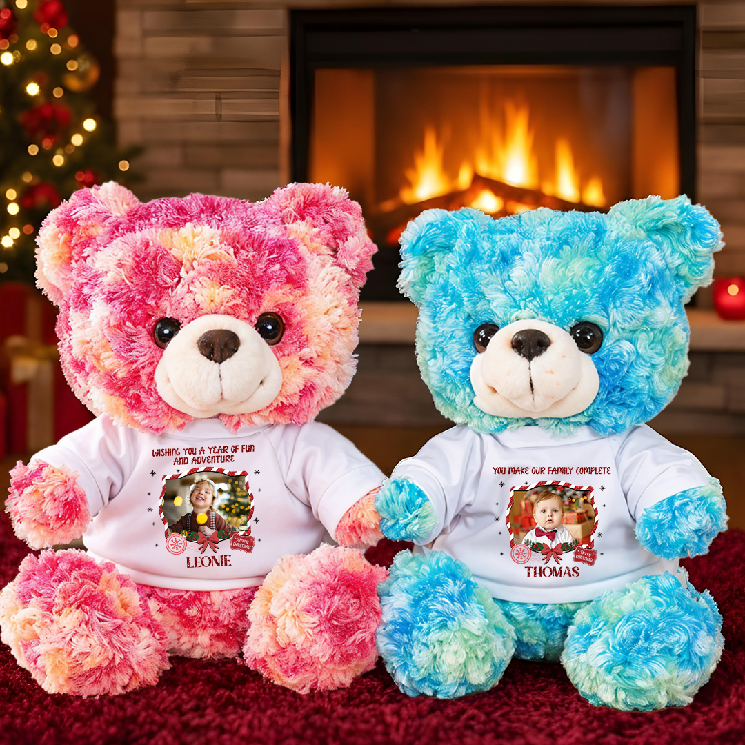 This heartfelt bear, with its photo-customized cotton tee, symbolizes eternal love. Soft and huggable, it comforts all ages as a cherished keepsake, tenderly preserving precious memories of your love story.