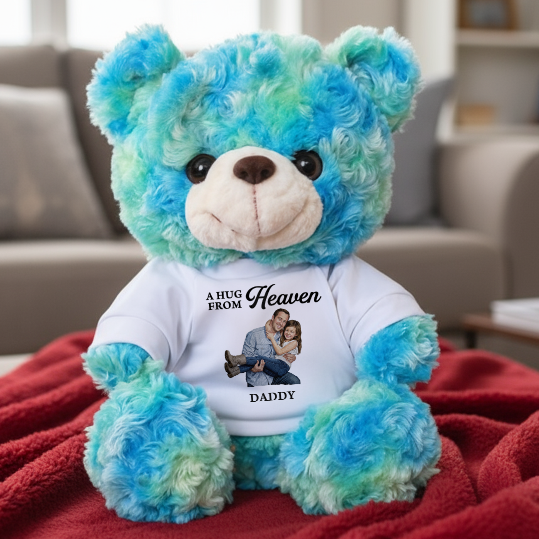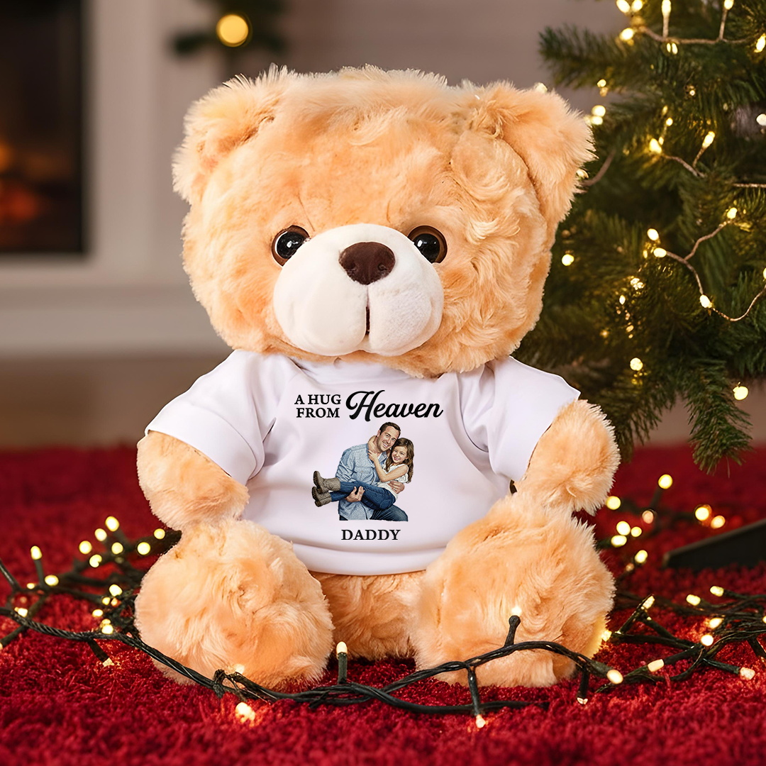 This touching keepsake bear is a sweet symbol of lasting love and connection. The soft cotton T-shirt can be customized with a favorite photo of you and your partner, turning this plush companion into a personal tribute to your shared journey.