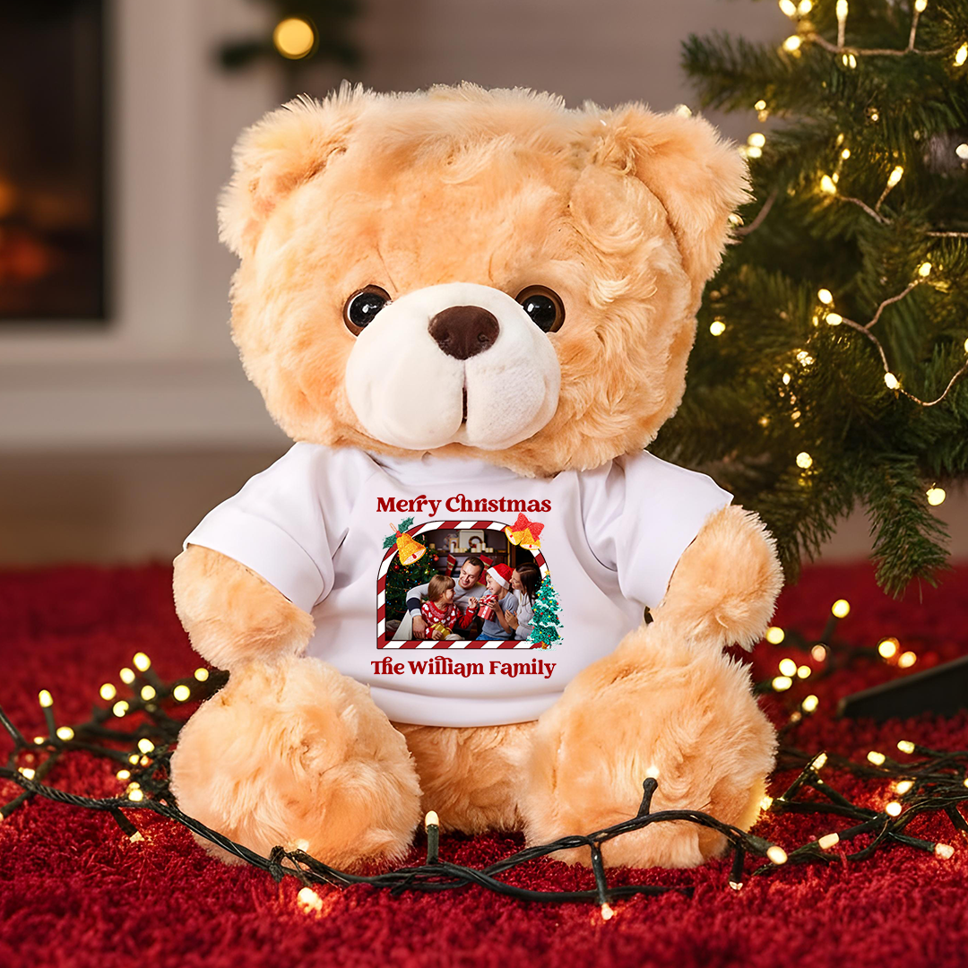 Custom Photo Our Family - Teddy Bear With Personalized Photo Shirt