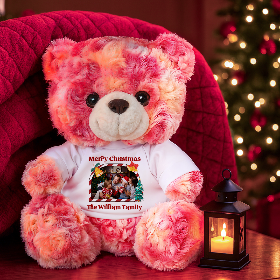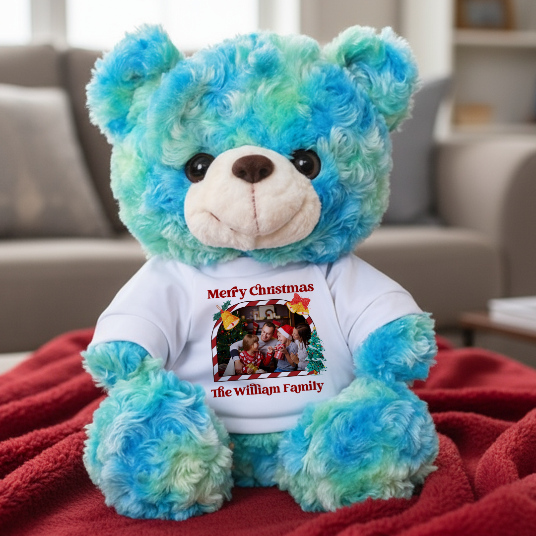This heartfelt bear, with its photo-customized cotton tee, symbolizes eternal love. Soft and huggable, it comforts all ages as a cherished keepsake, tenderly preserving precious memories of your love story.
