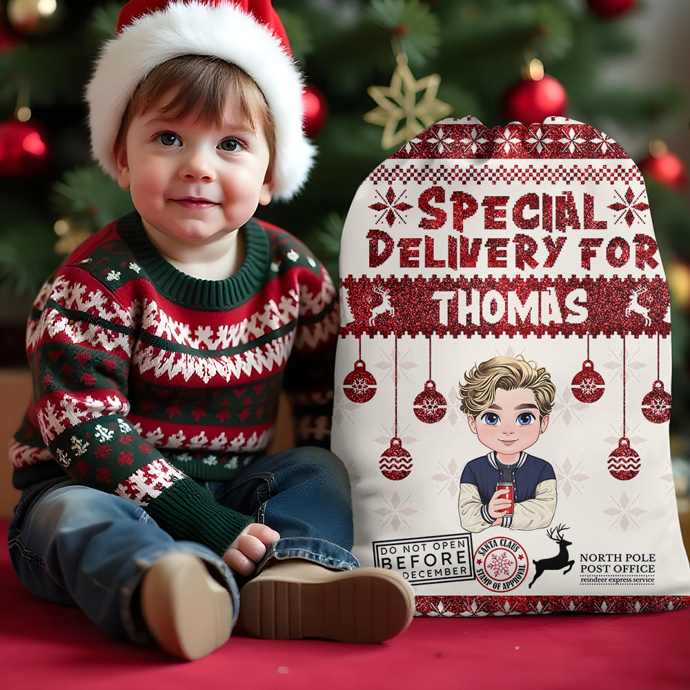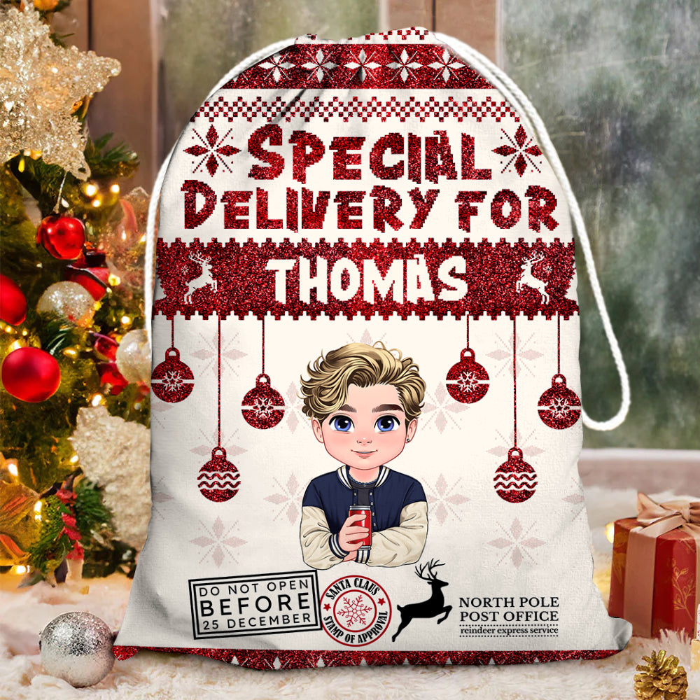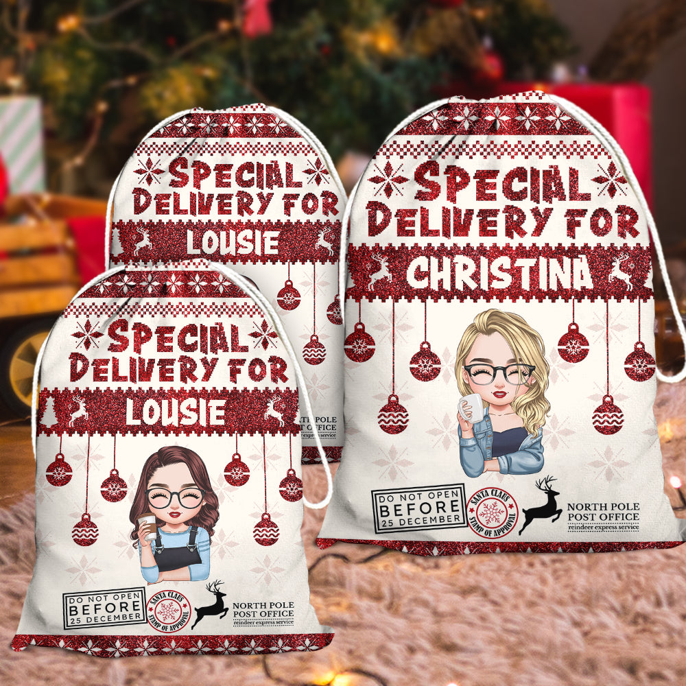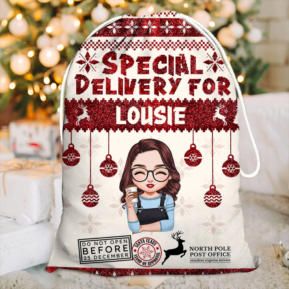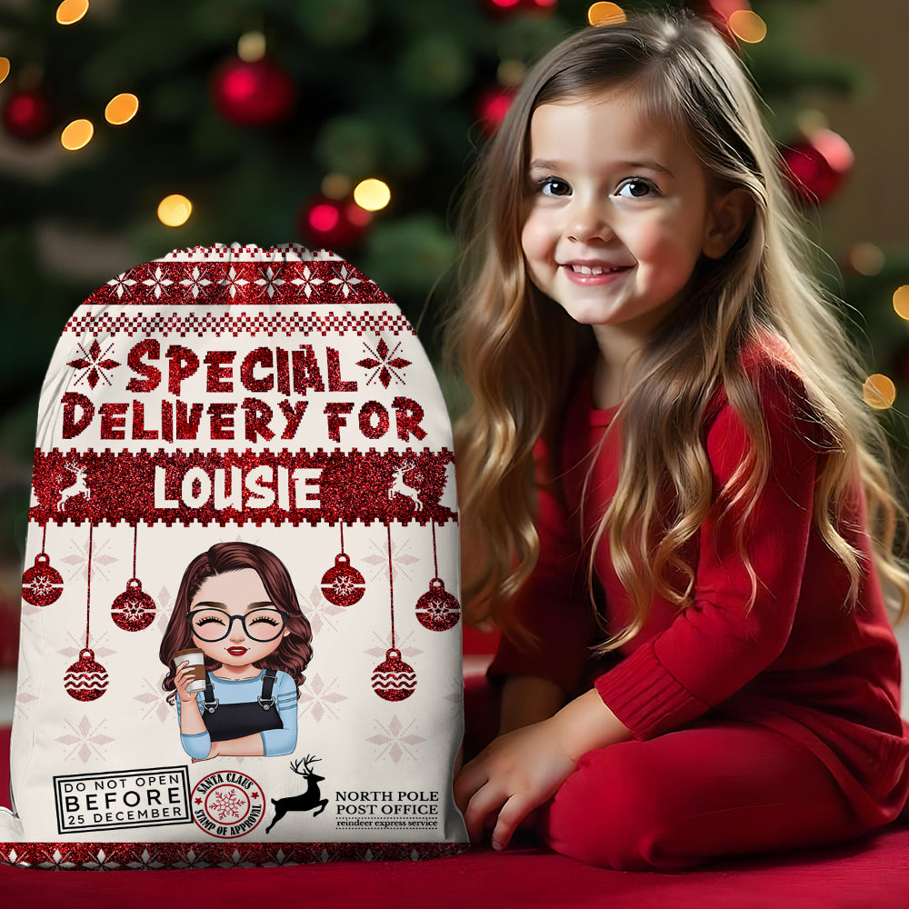 Glitter Special Delivery Santa Sack - Christmas Gift Bag for Kids and Adults and pet - Christmas Gift Bag